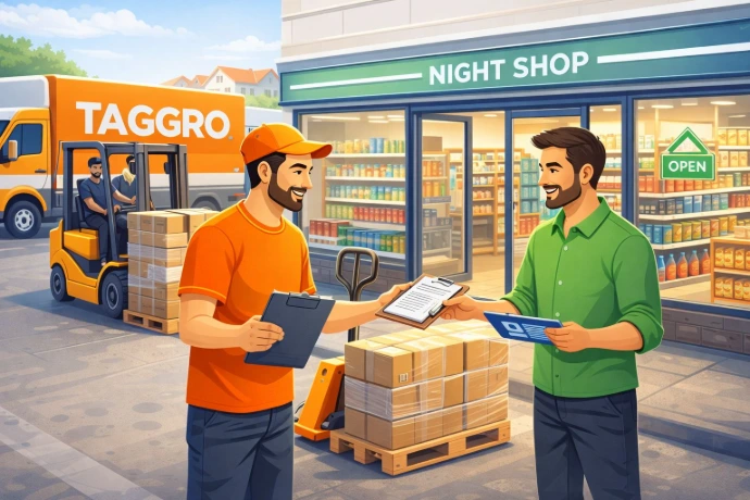 TagGro B.V. is één van de weinige leveranciers in Nederland die night shops en avondwinkels tot laat in de avond bedient.Wij begrijpen de behoeften van ondernemers die tot middernacht (00:00) actief zijn en zorgen voor snelle en flexibele leveringen.